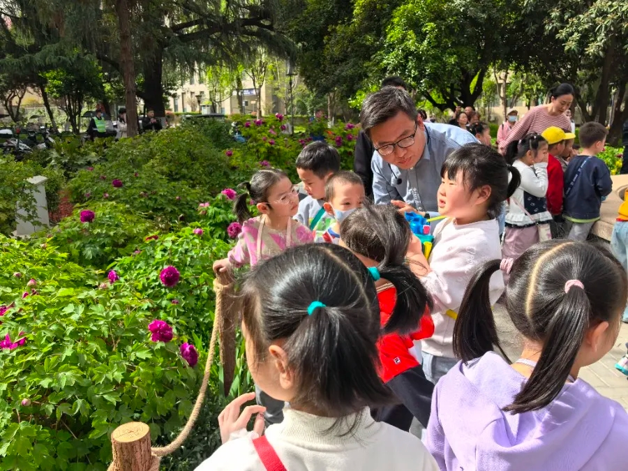 活动特设童趣科普小课堂,绿化老师化身 “花漾导师”,带着小朋友认识牡丹、了解花语。萌娃们围着花丛认真观察,在自然里收获知识与快乐,为春日添满童真与温暖。