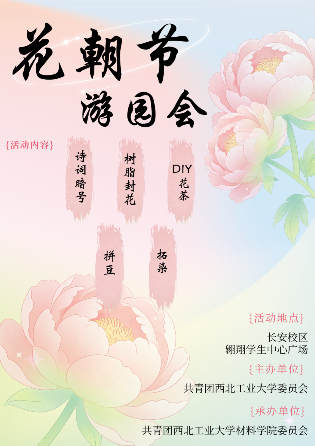 本次活动由材料学院与后勤集团、校工会、离退休处、艺术教育中心携手呈现,以牡丹为信、以春光为序,将国风雅韵、校园烟火与青春朝气揉进花海,让每一位工大人都沉浸式奔赴这场春日诗会。