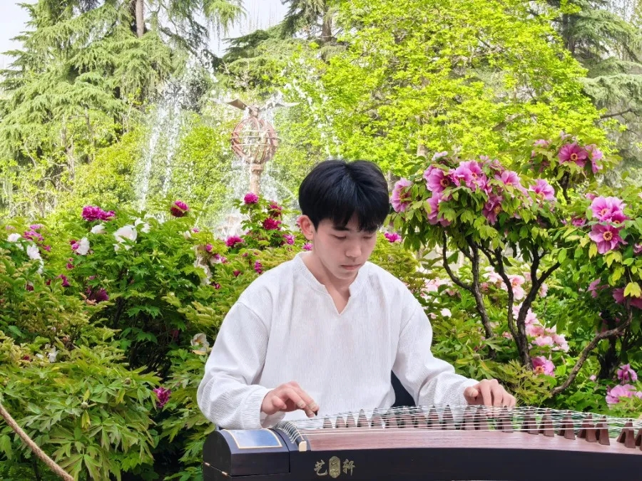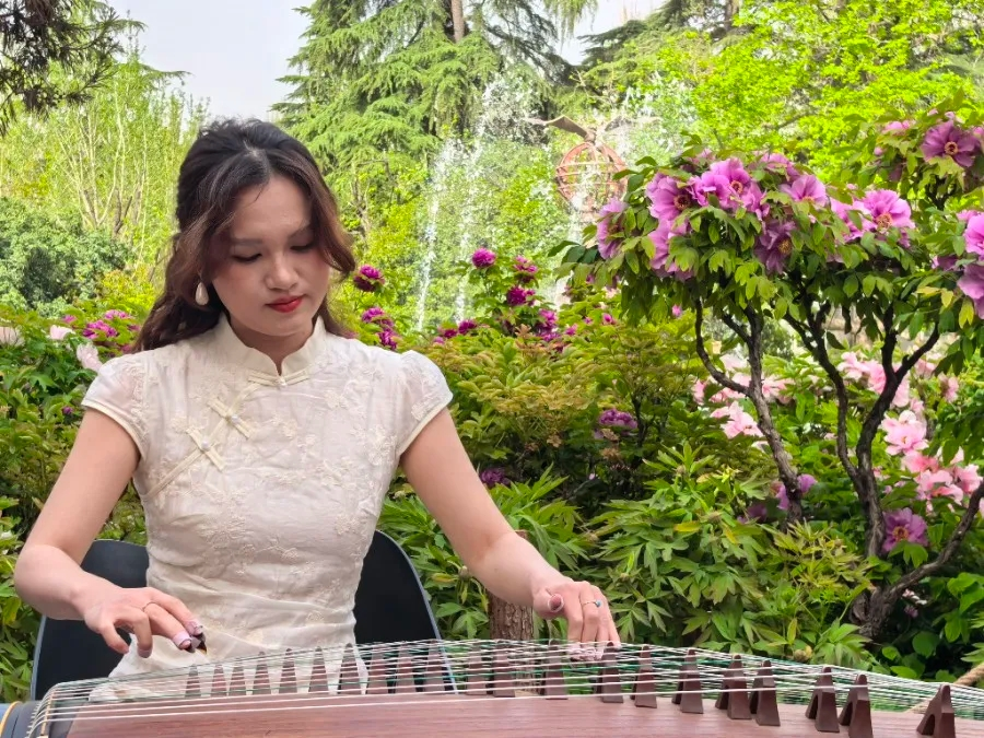 弦音袅袅,花香悠悠。古筝轻扬、琵琶婉转,一曲曲古韵在牡丹丛中缓缓流淌,花香伴着弦音,漫步花间,恰似闯入千娇万态破朝霞的诗意画卷,治愈感拉满,氛围感直接封神!