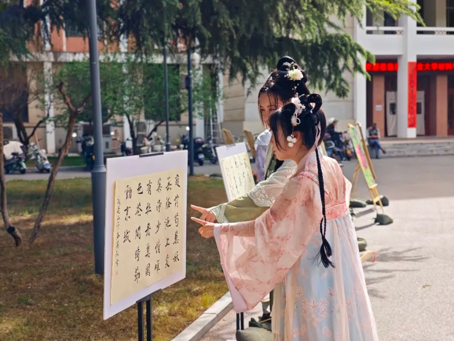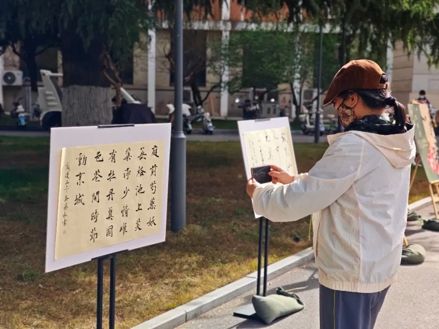 牡丹主题书画展区墨韵悠长,笔墨间尽是牡丹神韵。赏花、赏字、赏画,艺术与自然撞个满怀,让赏花之旅更有文化质感,尽显西工大深厚人文底蕴。