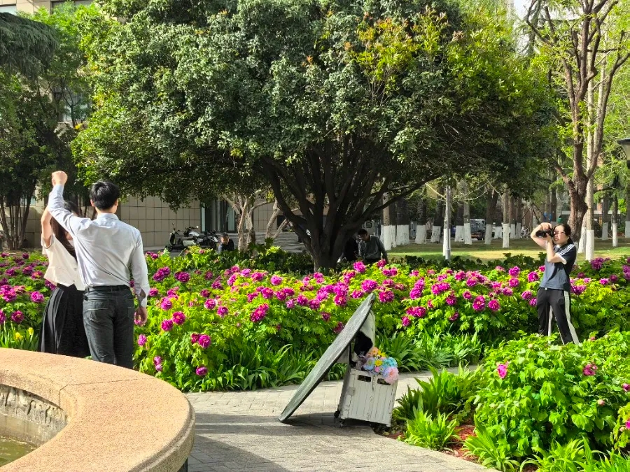 这场花朝节牡丹专场,不仅点亮了校园春光,更让青春与美好在春风里相遇,把诗词里的国色天香,变成触手可及的校园浪漫。