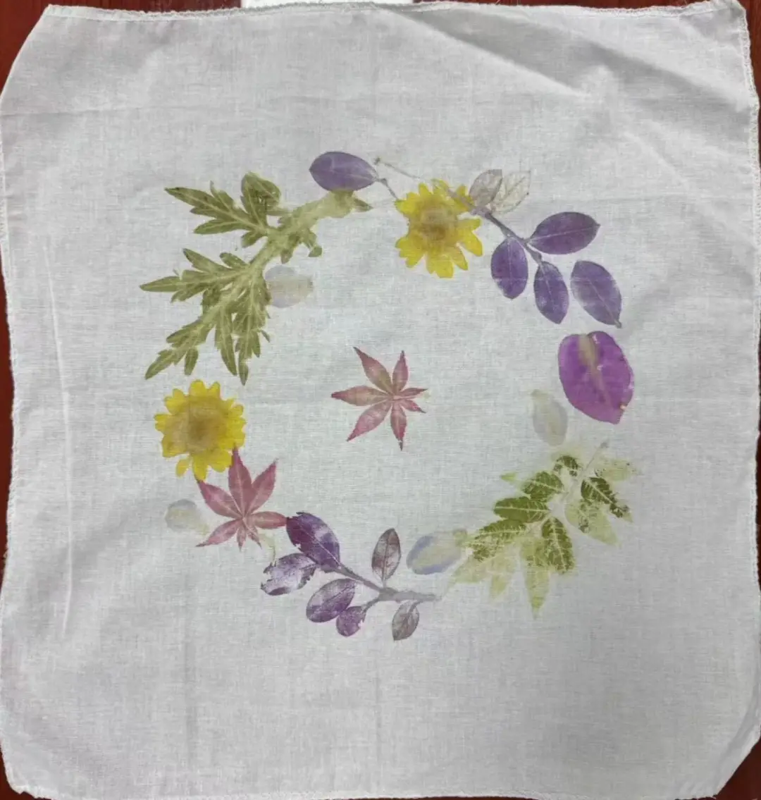 参与者可以选取植物的叶片、花瓣,借助工具和染料,把植物的纹理拓印在布料或纸张上,亲手完成拓染作品,体验拓染的制作过程。