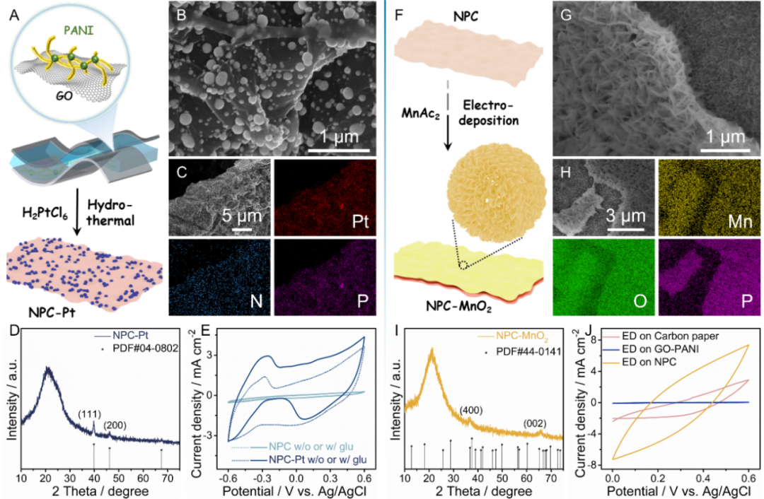 图3. NPC-Pt葡萄糖催化阳极和NPC-MnO2电容式阴极的制备及表征