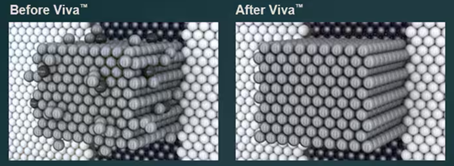 通过在铜沉积后立即进行处理,Viva 同时解决了这两大挑战以优化性能。氢自由基促进铜晶粒更大尺寸的生长,减少晶界并提升电流传输效率。同时,它们将锰驱至铜表面,以此增强可靠性,而非将掺杂剂留在金属本体中——这会导致电阻升高。