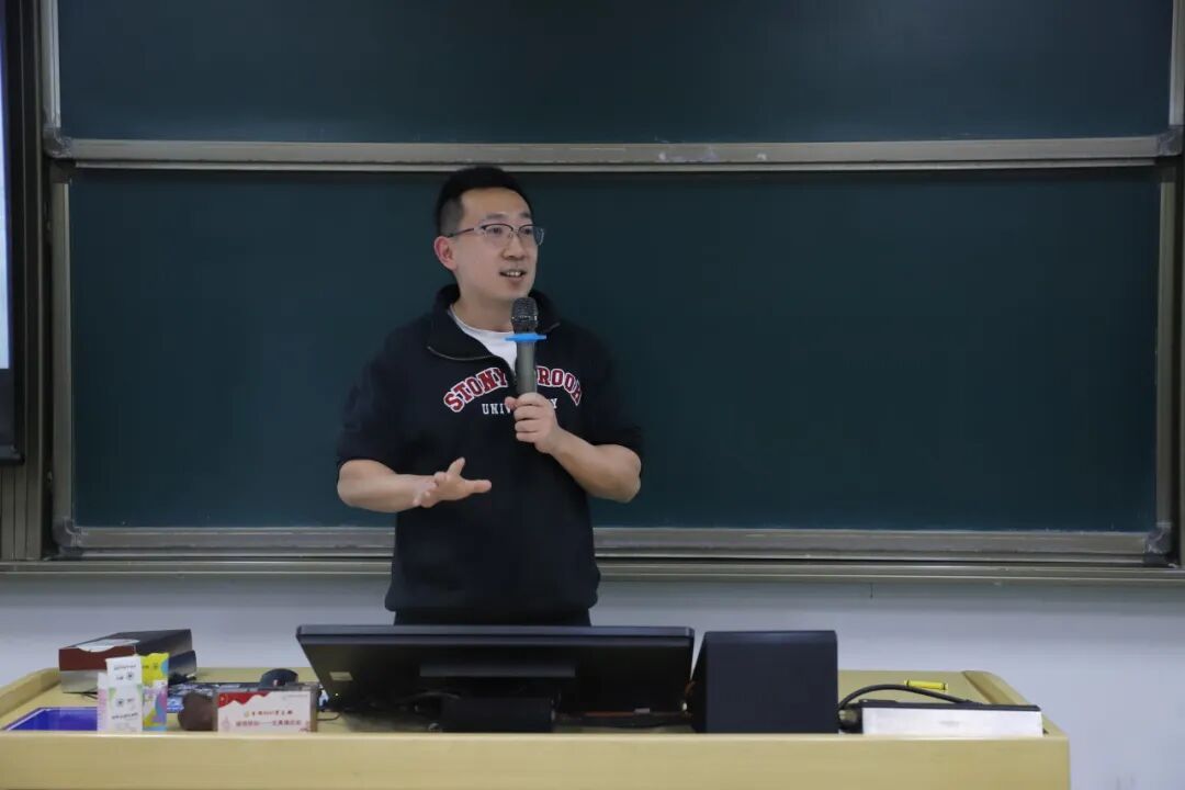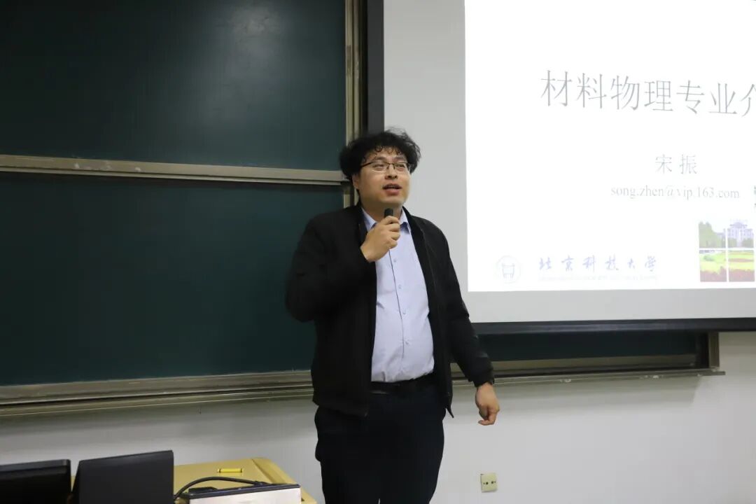 宋振介绍材料物理专业。针对外界误解,宋振详细说明将专业核心课程拆分的教学安排,保障学生得到充分训练。他坦言课程难度虽较大,但鼓励同学们秉持“年轻的时候就选择最难的路走”的信念,知难而上、追求卓越,呼吁对专业感兴趣的同学勇敢深耕,在专业领域实现自我价值。