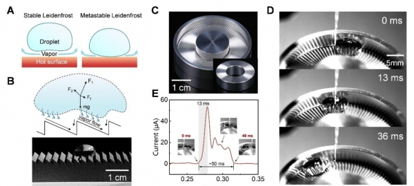 针对这一难题,国科大纳米学院博士研究生程鹏(培养单位:中国科学院北京纳米能源与系统研究所)在清华大学/北京清华长庚医院研究员李舟和副研究员邹洋的指导下,提出了一种基于亚稳态莱顿弗罗斯特效应的自驱动发电机(MLE-SEHD)。