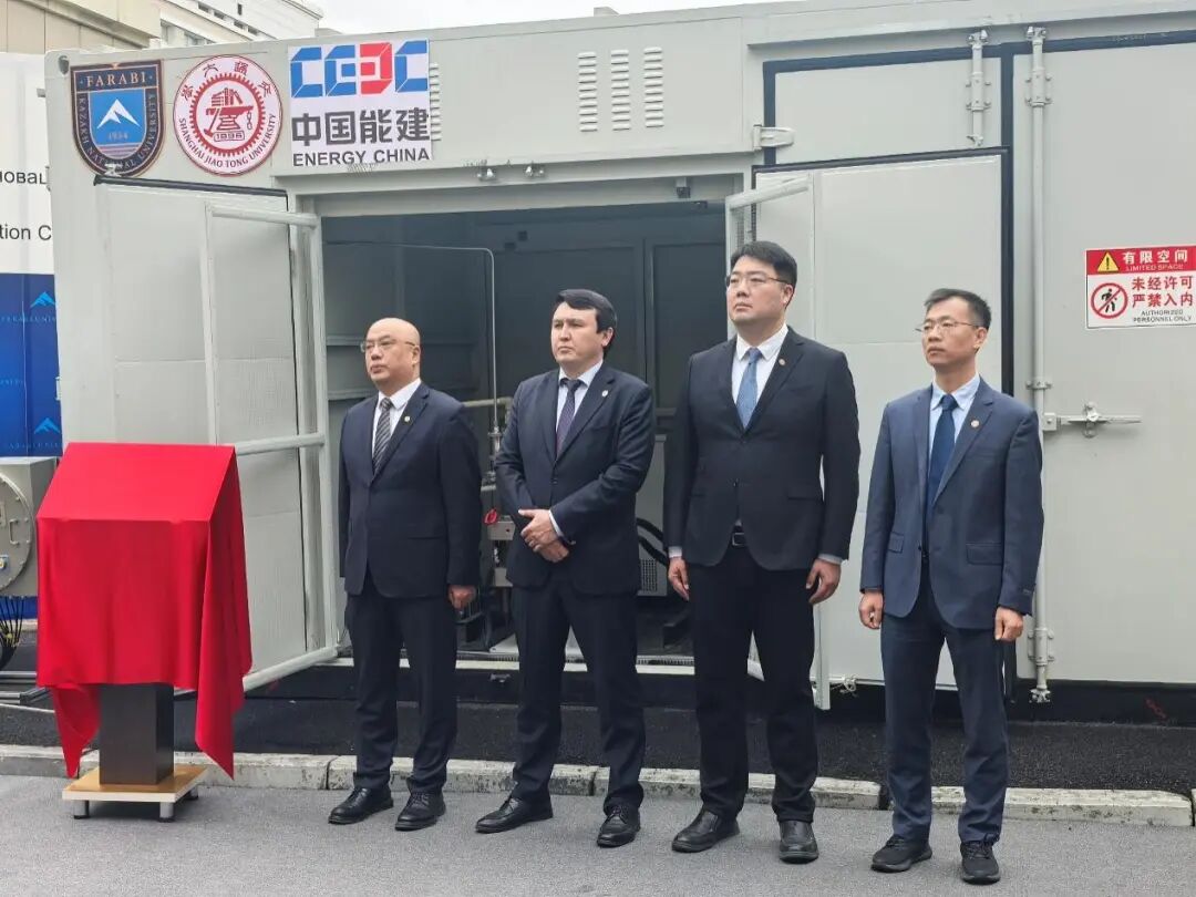 中能建海外投资有限公司萨乌兰光伏发电有限公司及卡拉干达风储有限公司董事长邵月波,上海交大科研院副院长陆琪,前沿创新研究院副院长金晶,国际交流处副处长马威,材料学院院长戴庆,副院长陈科,院长助理刘静,首台套AEM制氢-镁基固态储氢一体化系统项目负责人邬剑波列席投运仪式。