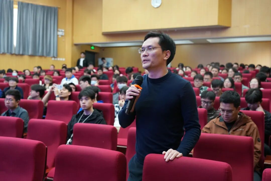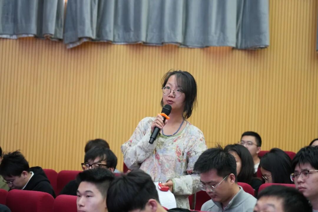 交流环节,叶国安院士与在场师生围绕快堆工程化、锕系分离工艺、核材料界面特性等问题进行深入交流,并就科研与学习中的疑问作细致解答。他勉励同学们立足国家战略需求,深耕材料与核化工交叉领域,为我国先进核能与核燃料循环事业贡献力量。