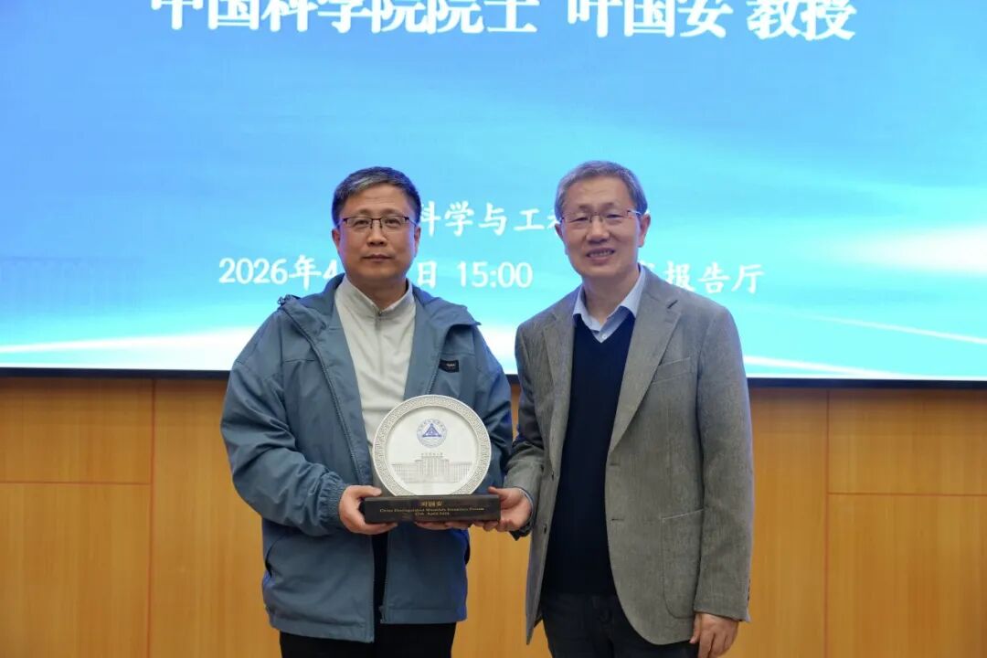 报告结束后,邢献然代表学校向叶国安院士赠送了中国材料名师讲坛纪念碑。