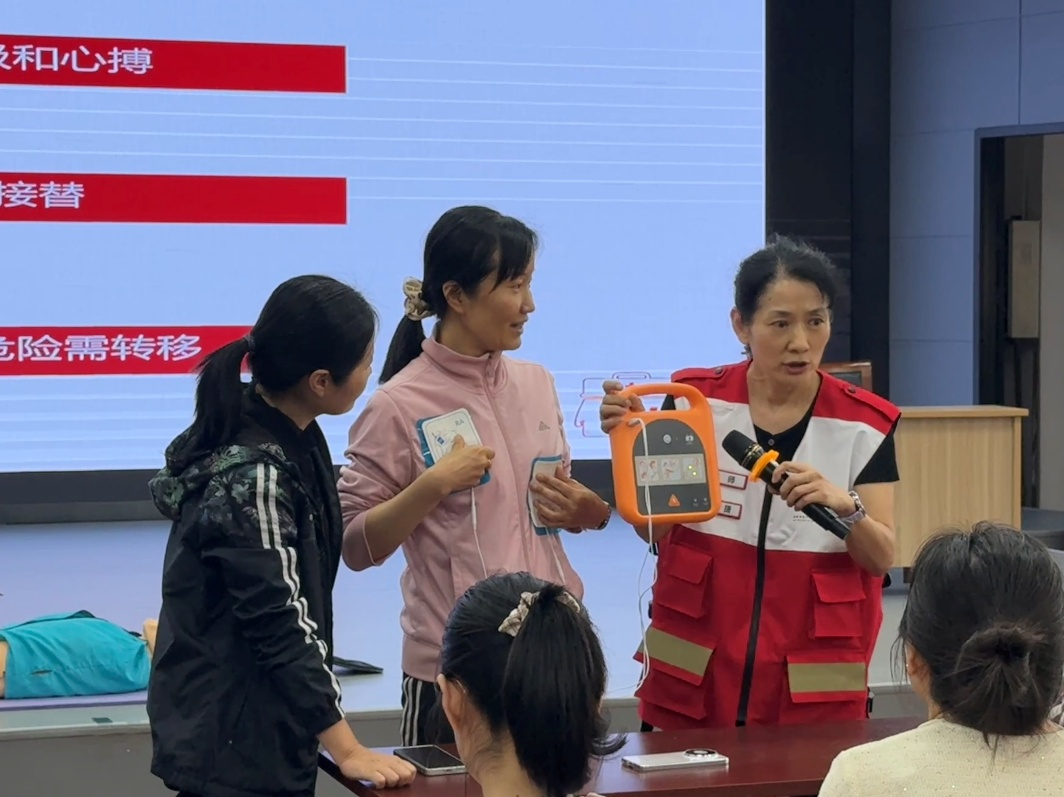 培训聚焦实用急救技能,核心内容为心肺复苏(CPR)与自动体外除颤器(AED)标准操作。红十字会专业讲师结合真实案例,用通俗易懂的语言讲解急救原理、操作要点及注意事项,并现场演示操作,细致拆解急救步骤。