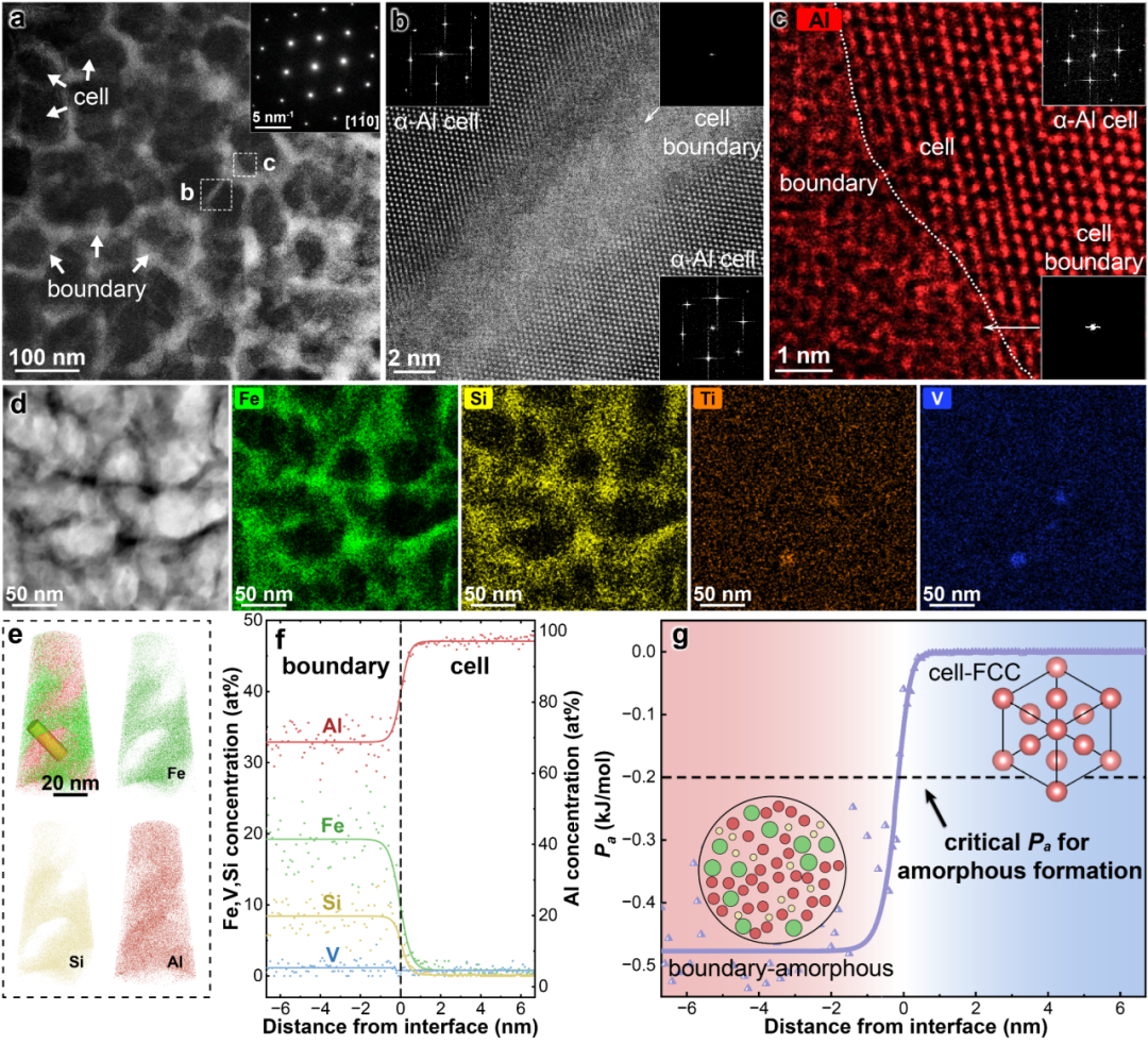 这种优异的力学性能及热稳定性,得益于其独特的纳米尺度的“晶体-非晶”连续互穿网络结构。该结构能在微观尺度上对位错运动和晶界迁移施加持续约束。测试表明,即使在300℃高温下持续暴露100小时,合金的微观结构依然保持稳定,仍能保留80%以上的原始强度。这一成果为航空航天等领域轻量化耐热构件的直接制造提供了极具潜力的全新方案。