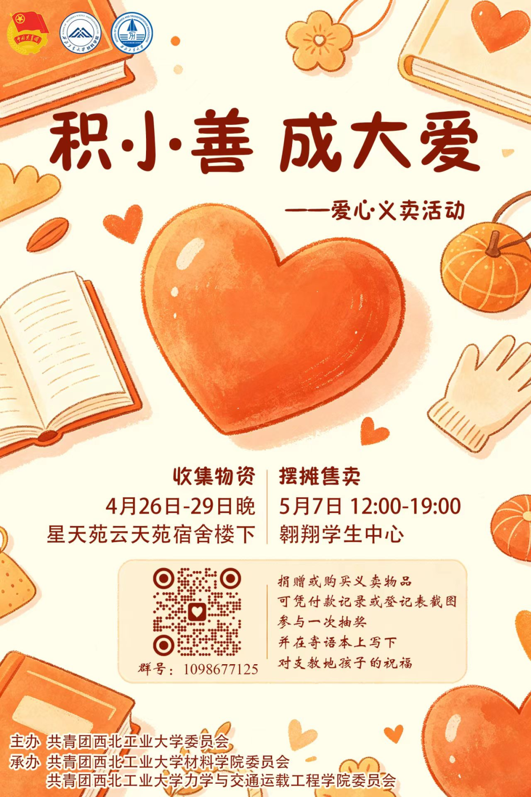 4月26日到29日每晚18:00~19:00,我们将搭设外场摊位收集义卖物资。诚挚邀请各位积极贡献卖品,助力义卖顺利进行。