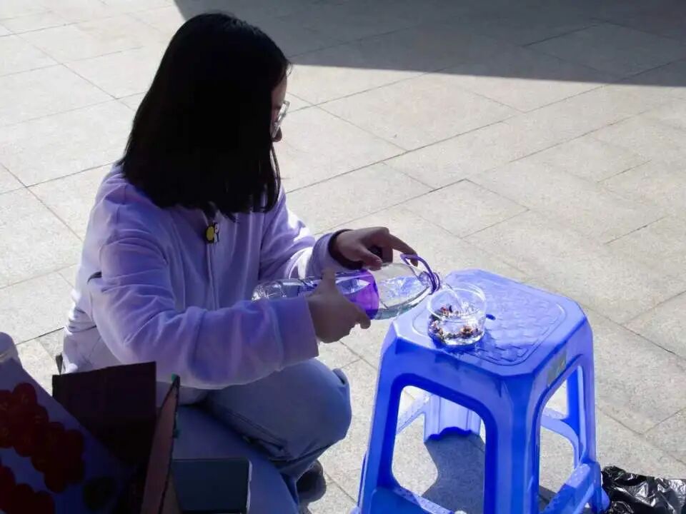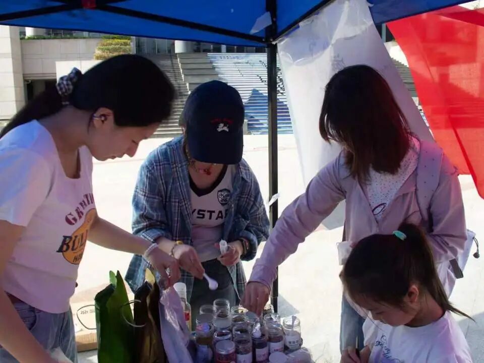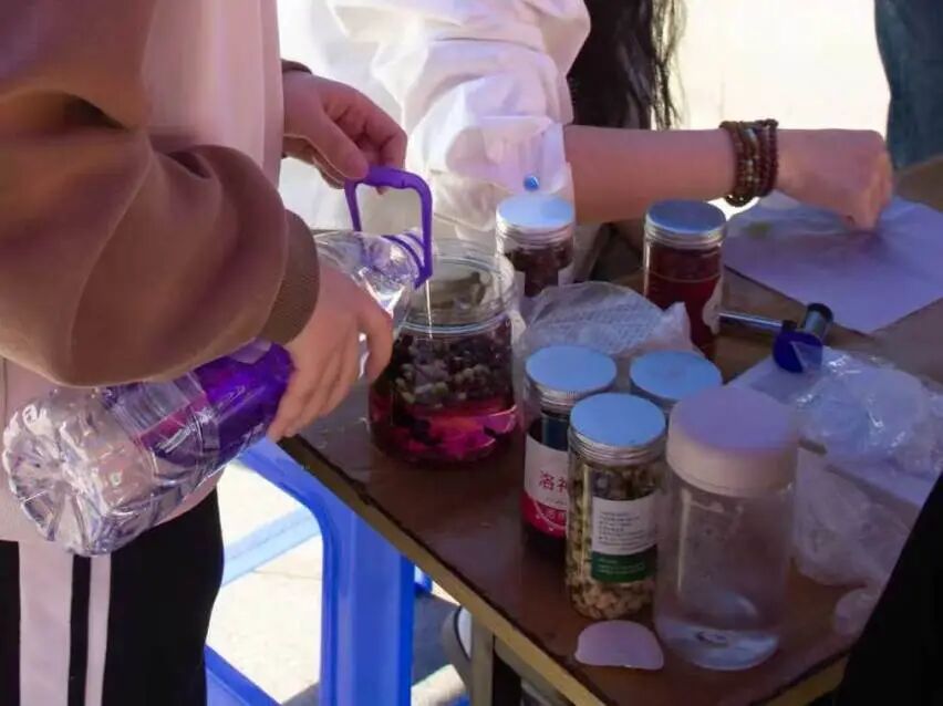 花茶DIY区香气氤氲,玫瑰、茉莉、桂花等多种花材随心搭配。同学们亲手调制自己的“春日茶罐”,摇一摇,将春天的味道封存。注入热水,花香升腾,入口清润,仿佛喝下了一整个春天的柔软与安宁。