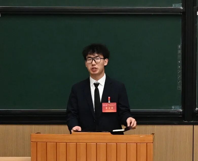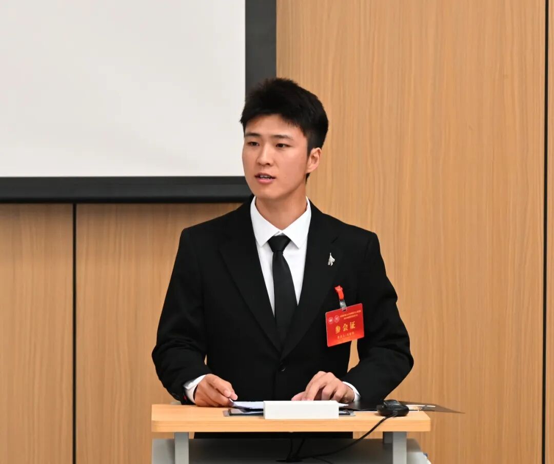大会第一项,北航校研究生会代表刘佳镇发言。成绩斐然令人振奋,薪火相传再谱新篇。刘佳镇首先回顾了2025年材料学院研究生会在政治引领、社会实践、成长赋能、深化改革、配合联动等方面取得的成果,对我院研究生会工作表示肯定。随后向材料学院第四次研究生代表大会的召开表示最热烈的祝贺,并对未来工作提出新的要求与方向,希望同学们坚守初心使命,深耕服务之本,彰显青年担当,号召同学们在学院发展和科技强国建设中勇担使命、奋发前行,以青春之我、奋斗之我,为材料学院高质量发展、为学校“双一流”建设贡献青春智慧与力量。