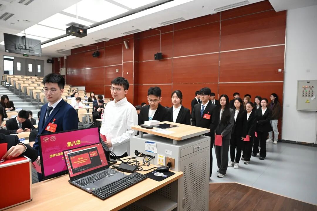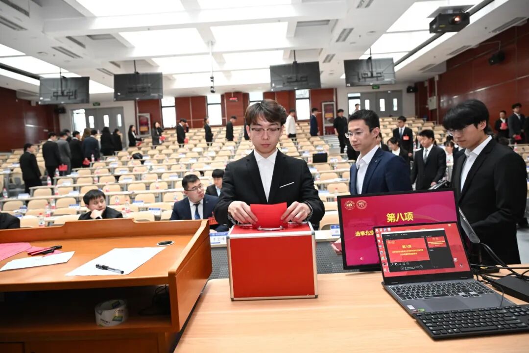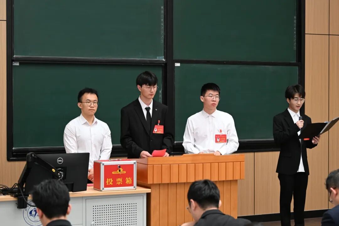 大会第六项,大会进行北京航空航天大学材料科学与工程学院2026届研究生委员会委员选举工作。选举由张晓强担任总监票人,经现场无记名投票、监票人及计票人严谨履职,最终王子龙、王雨阳、石茹、刘鑫、杜奕璇、南泽玉、徐也涵之、徐靖阳、耿直、葉薷鸿(按现场公布顺序,排名不分先后)当选为研究生委员会委员。选举过程全程公开透明,充分体现了民主、规范的原则,为学院研究生工作注入了新的组织力量。