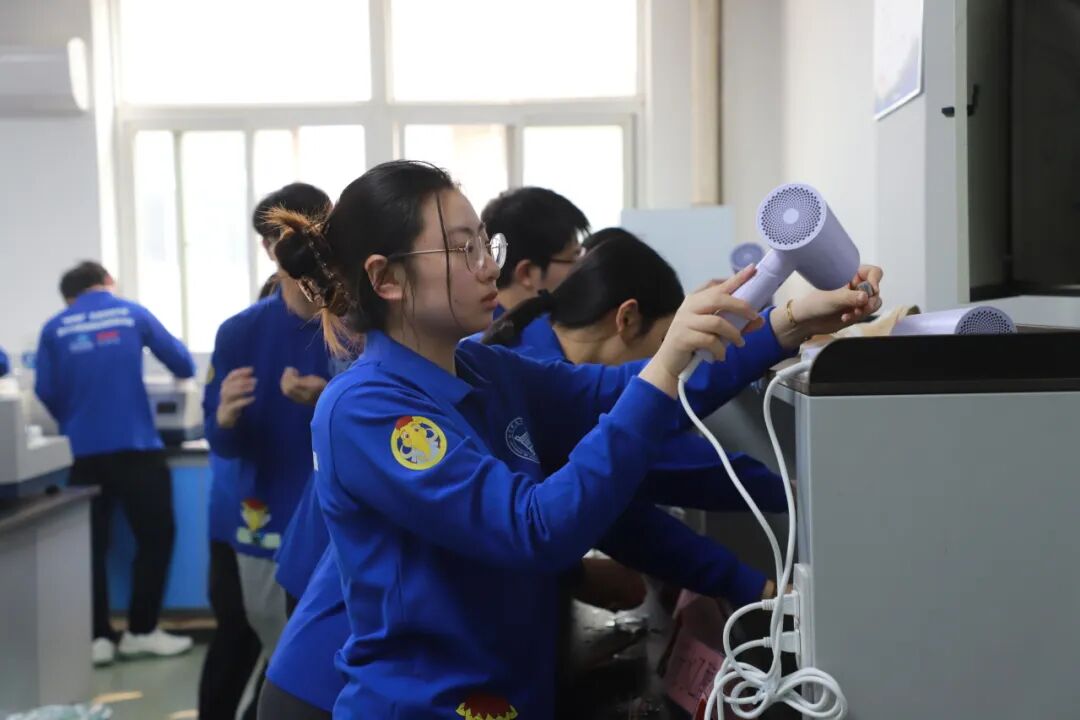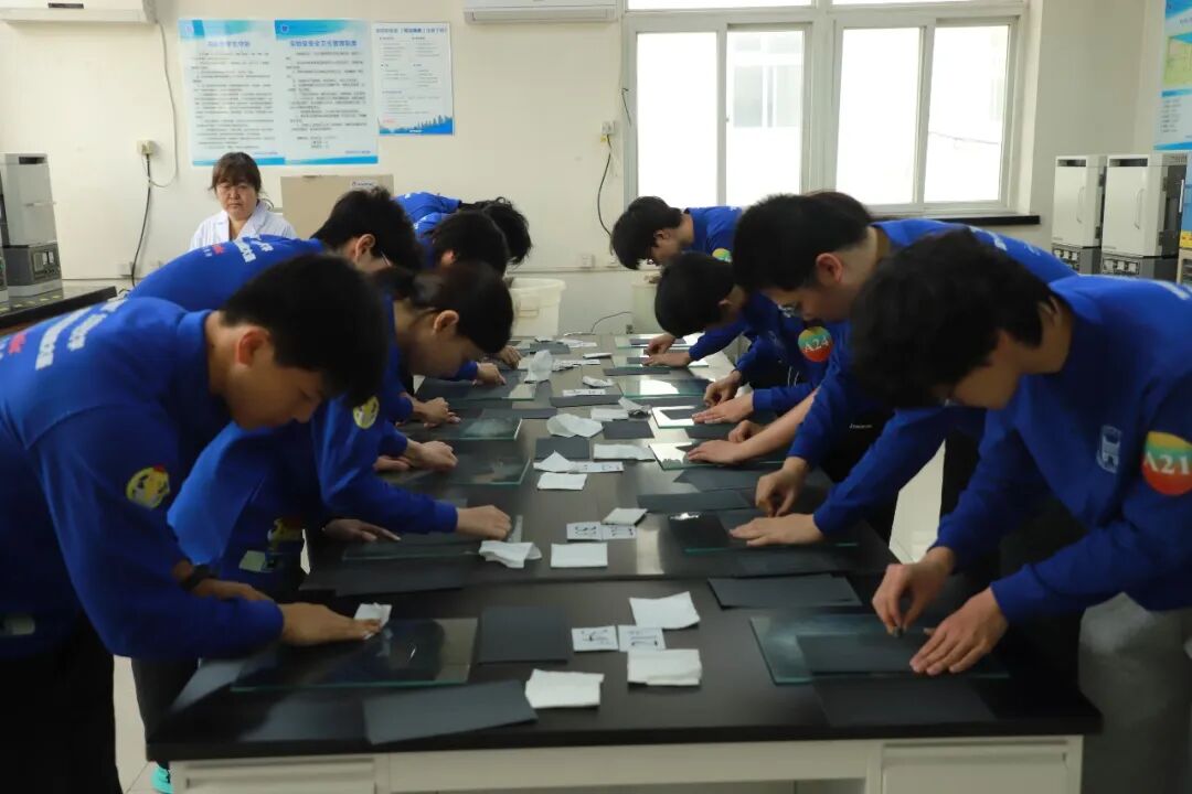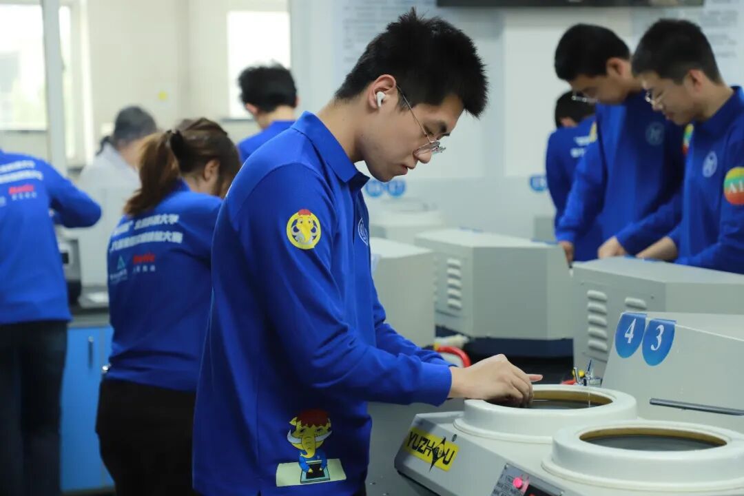 本届大赛赛事影响力持续攀升,吸引全校三百余名材料及相关专业本科生踊跃报名、积极备战。比赛中,选手们身着统一赛服,全神贯注、沉稳从容,完整挑战手磨—机磨—抛光—浸蚀—显微观察五大核心操作环节。在短短45分钟的限时考验里,大家以毫米级的极致精度打磨每一块试样,在高倍显微镜下耐心捕捉金属微观组织的精密奥秘,用指尖的打磨、严谨的操作,将书本里的理论知识精准落地为娴熟扎实的实操本领。