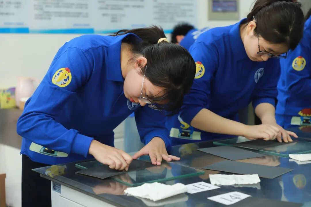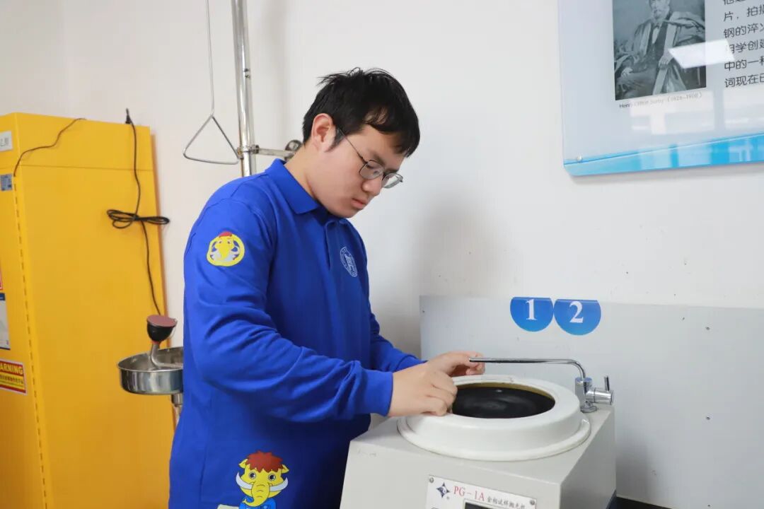 从粗磨到细磨的耐心沉心,到抛光之后如镜面般光洁锃亮的金属质感,再到精准浸蚀后清晰分明的金相组织形貌,每一道工序都藏着千锤百炼的积累,每一次操作都是理论与实践的深度碰撞。参赛同学们专注细致、精益求精,俨然一群材料世界里的“微观雕刻家”,在方寸金属试样之上,镌刻着北科青年严谨求实、守正创新的治学态度与科研底色。