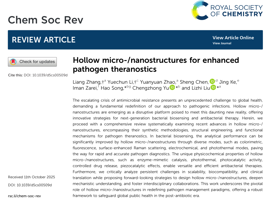 材研“1-0” | 刘立志教授团队Chem. Soc. Rev.综述:空心微纳米结构用于增强型病原体诊疗一体化新进展