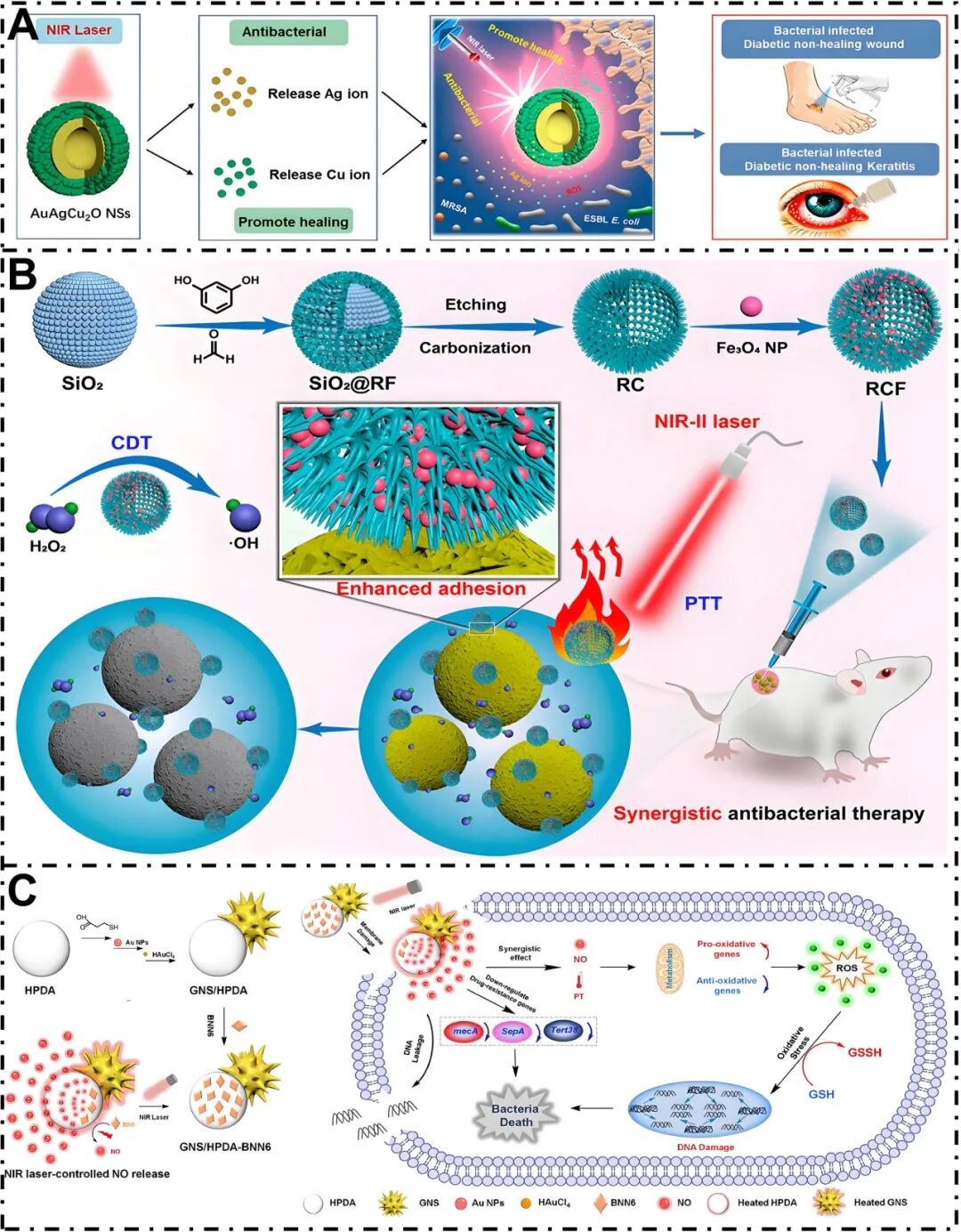 图5. 空心微纳米结构增强抗菌治疗(图为增强的光热杀菌模式)