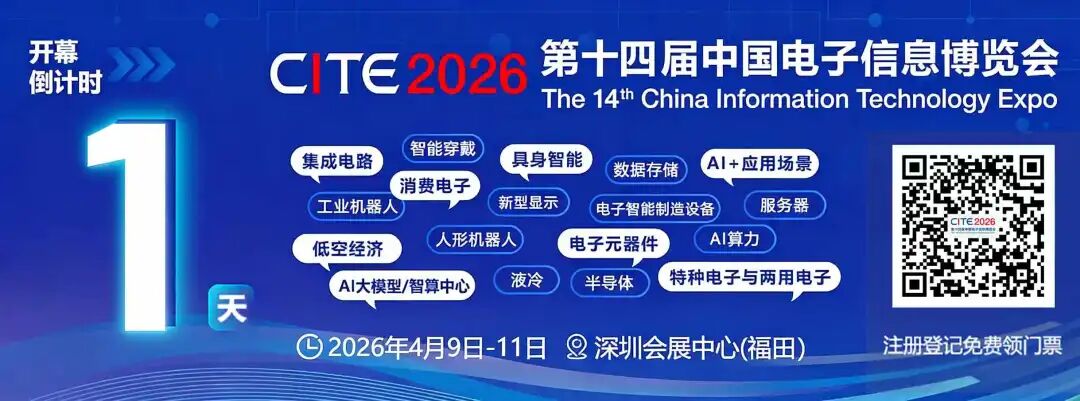 距离开展仅剩1天第十四届中国电子信息博览会(CITE2026)将于4月9日深圳会展中心(福田)隆重开幕,本届博览会以“新技术 新产品 新场景”为主题,聚焦消费电子、具身智能、集成电路应用、AI+应用场景、AI大模型&智算中心、电子元器件、特种电子元器件等前沿领域。展会将汇聚超1200+全球优质参展企业,预计将吸引超7万名海内外专业观众,紧扣2026“深圳APEC年”的国际合作契机,旨在打造一场展示