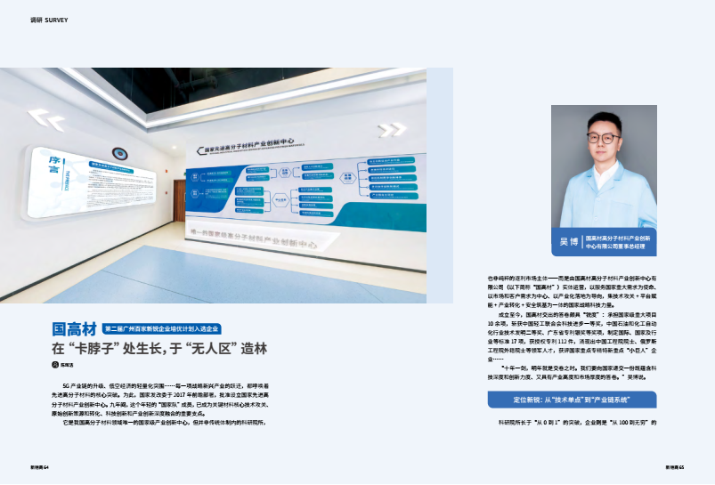 【编者按】作为我国高分子材料领域唯一的国家产业创新中心,创新中心用九年时间证明:破解"卡脖子"难题,不必依赖财政补贴的"输血",而是可以依靠市场化机制自我"造血";跨越科技成果转化的"死亡谷",需要的不仅是单点突破,更是要构建"热带雨林"式的创新生态。本文原载于《新穗商》新时代广州商业观察2025年第12期(主管单位:广州市工商业联合会,编印单位:广州市促进民营经济发展中心),以下为专访全文。"十