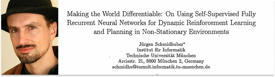 1990 年,于尔根·施密德胡伯(Jürgen Schmidhuber,LSTM 之父)当时还是慕尼黑工业大学的年轻研究者,发表了《让世界可微分》(Making the World Differentiable)。这篇论文提出构建一个循环神经网络(RNN),赋予它两个任务:第一,学习预测模拟世界中接下来会发生什么;第二,用这个模拟世界来训练一个 Agent 在其中行动。