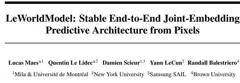 近日,杨立昆团队发表的论文,提出了一款名为 LeWorldModel(简称 LeWM)的全新世界模型,核心解决了传统 JEPA 训练不稳定、易崩溃、超参数多、计算成本高的问题,是首个能从原始像素数据端到端稳定训练的世界模型。整个模型就 2 个核心组件、2 个损失项,15M 参数,单 GPU 几小时就能训完,只有 1 个有效可调超参数。