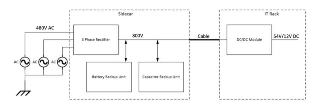 另一方面,在数据中心直流供电的实践上,中国实际上早于海外走了一步。2007 年,江苏电信就开始试点 240V 高压直流供电。此后,以 BAT 为代表的互联网巨头在自建数据中心中广泛采用“一路市电 + 一路 HVDC”的双路架构。2019 年,阿里巴巴联合台达和中恒电气推出了“巴拿马电源”方案,从中压 10 千伏交流一步直转 240V 直流,省去了传统架构中的多级中间设备,系统效率达到 97.5%,占地面积缩减近 50%。