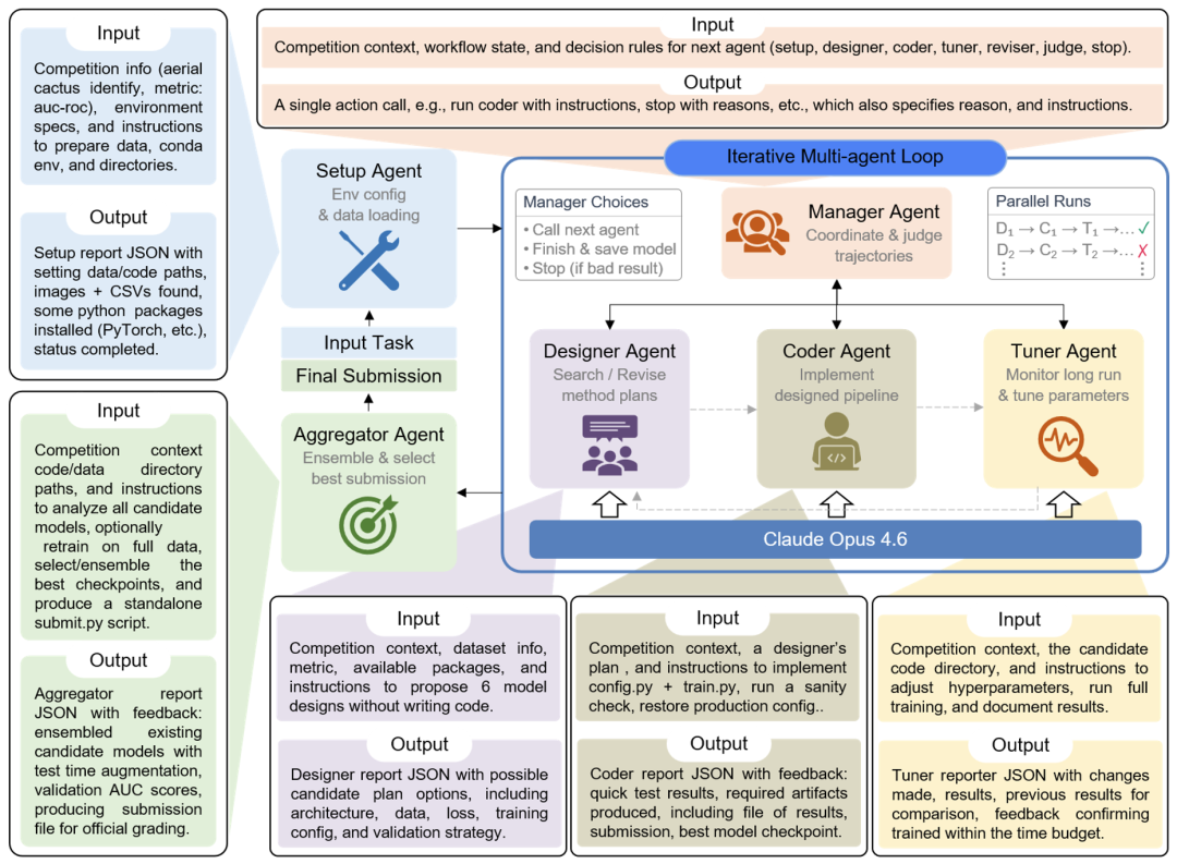 “如果有一个智能体,能让用户只用自然语言描述任务,后续所有步骤——模型架构设计、代码编写、训练、超参数调优、性能评估、甚至自我复盘改进——全部自动完成,那对两类学生都是巨大解放。”他补充道。