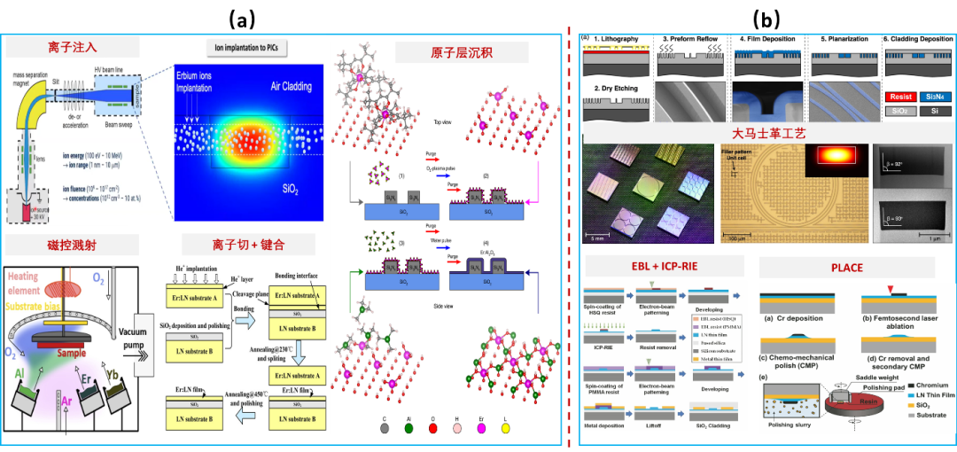 图5 EDWA的工艺制备 (a)增益介质制备技术;(b)低损耗波导制备技术
