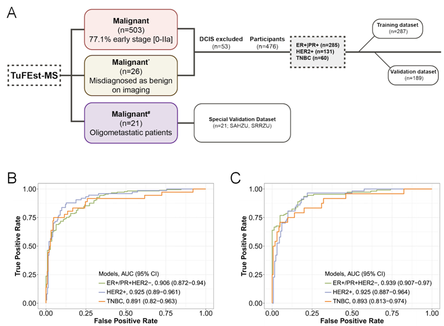 结果发现,TuFEst® 模型在区分乳腺癌与良性病变方面表现卓越。在训练集和验证集中,其检测灵敏度分别达到 95% 和 92%,特异性分别为 78% 和 87%。