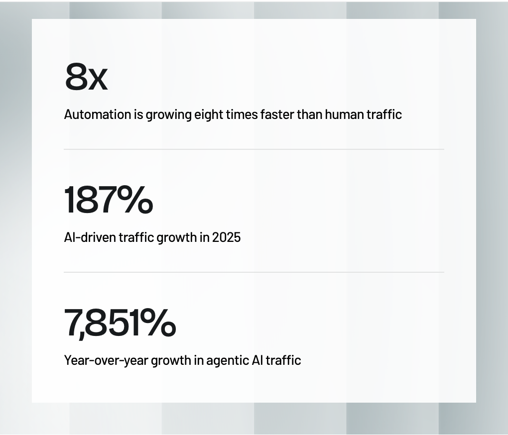 几家公司的测量口径和客户构成各不相同,数据之间没法简单对齐,但趋势方向是一样的:机器正在成为互联网上的多数派。