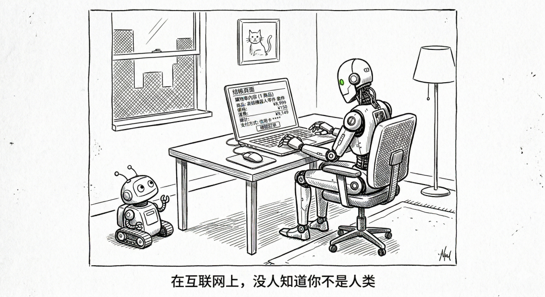 这意味着什么?一个 AI Agent 快速浏览商品页面、登录账户、填写支付信息、完成结账,这一整套行为,如果是代表消费者的购物助手在做,就是合法的 Agent 商务;如果是欺诈脚本在做,就是自动化信用卡盗刷。行为模式几乎一模一样,区别只在于意图。