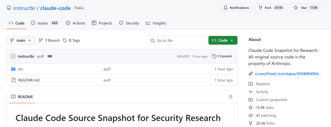 数小时内,泄露代码已被“热心网友”归档至 GitHub,获得超过 13,000 颗星和 20,000 次 fork。
