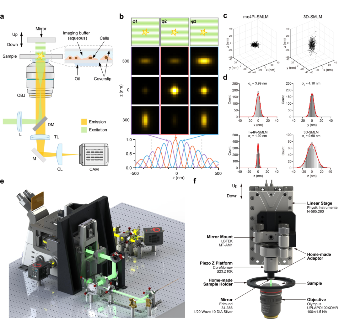图1:me4Pi-SMLM原理与性能验证