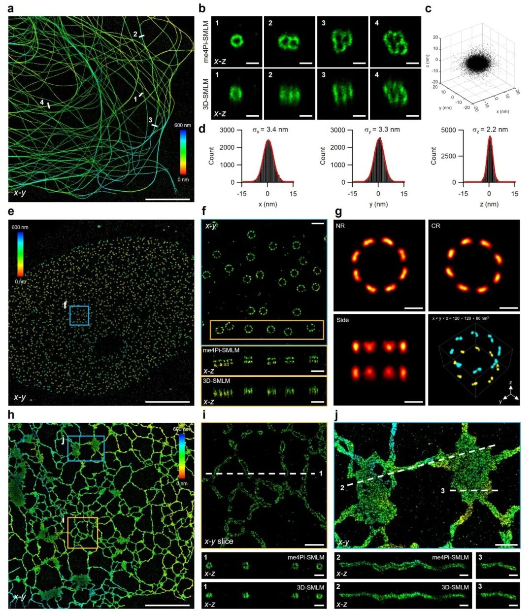 图2:me4Pi-SMLM解析亚细胞结构
