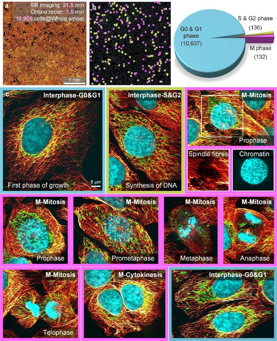 图2:异步生长细胞的全景式细胞周期超分辨成像