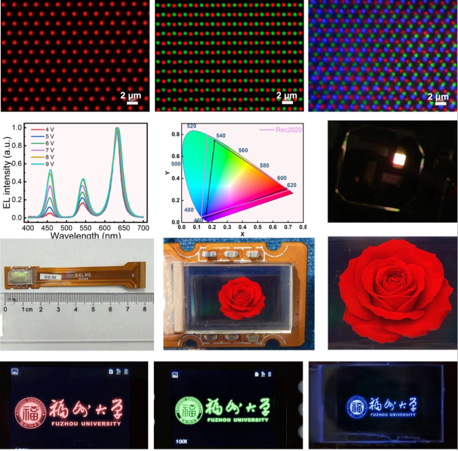 在系统集成层面,团队进一步实现了:1)RGB像素化白光器件EQE达10.1%,刷新纪录,2)与CMOS驱动电路集成,3)构建可逐像素控制的显示原型。该原型能够实现动态显示,相当于“给每一个纳米像素配备独立控制电路”,验证了其在实际显示芯片中的应用潜力。