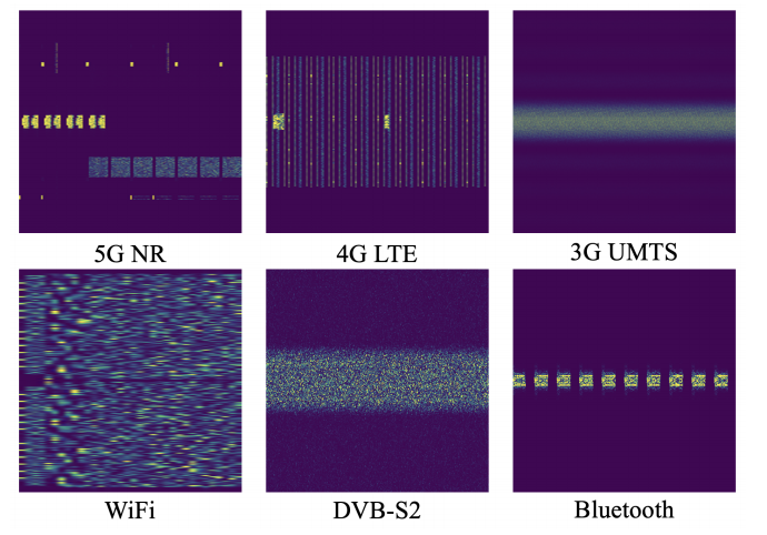所以他们走了另一条路:用仿真软件合成数据。他们用 MATLAB 里符合国际标准的通信工具箱,生成了 6 种主流无线技术的信号,包括 5G NR、4G LTE、3G UMTS、WiFi、蓝牙和卫星通信。