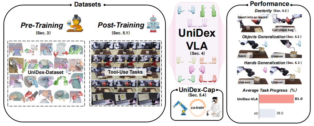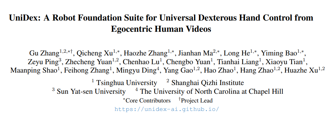 相关论文题目为《UniDex:基于第一人称人类视频的通用灵巧手控制机器人基础套件》(UniDex: A Robot Foundation Suite for Universal Dexterous Hand Control from Egocentric Human Videos)[1],目前已被 CVPR 接收,相关代码、模型均已开源。