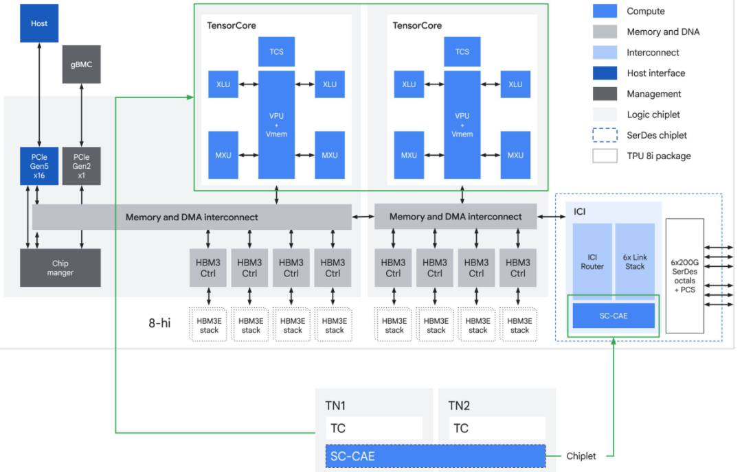 图 | TPU 8i ASIC 框图(来源:谷歌)