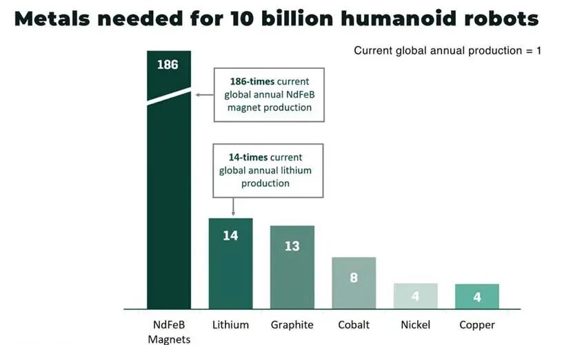 图丨制造100亿台人形机器人所需的金属(来源:Adamas Inside)