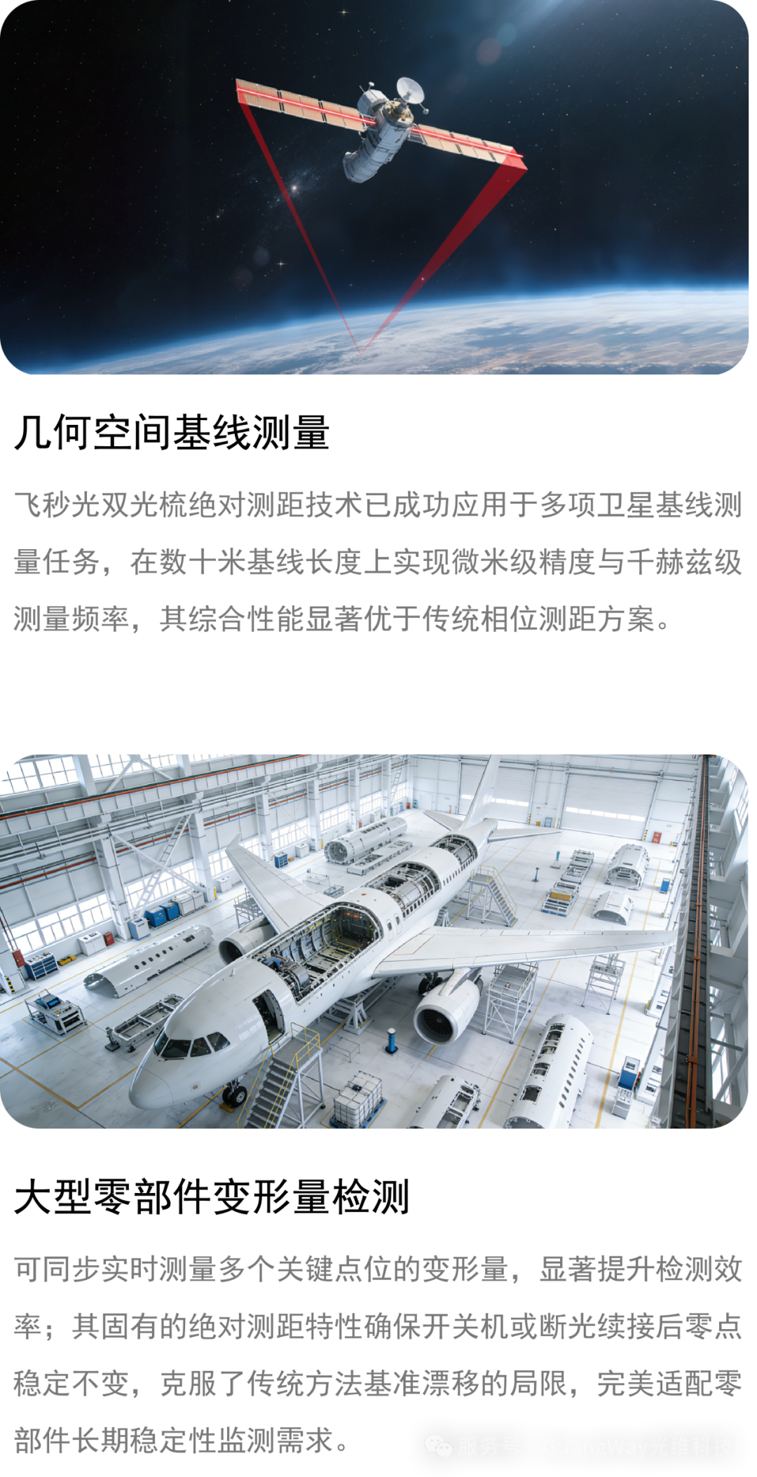 公司目前已形成全链条自主研发和生产能力,产品涵盖飞秒激光频率梳、双光梳绝对测距仪等核心设备;相关成果已应用于卫星基线高精度测量、大型空间相机变形监测等国家重大任务;荣获中国计量测试学会科技进步一等奖、中国机械工业学会科技进步特等奖、中国光电仪器品牌榜“金燧奖”金奖等荣誉。