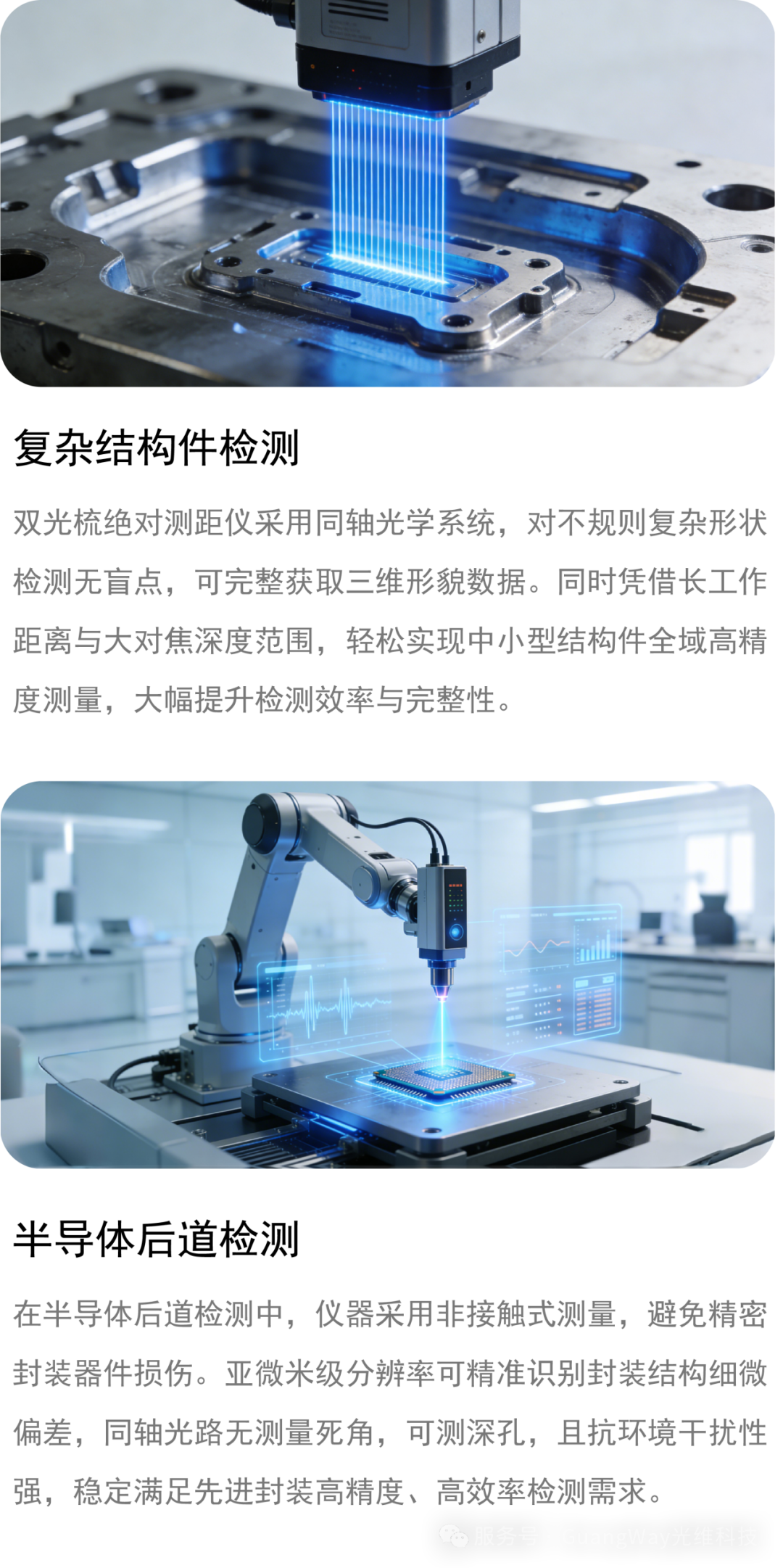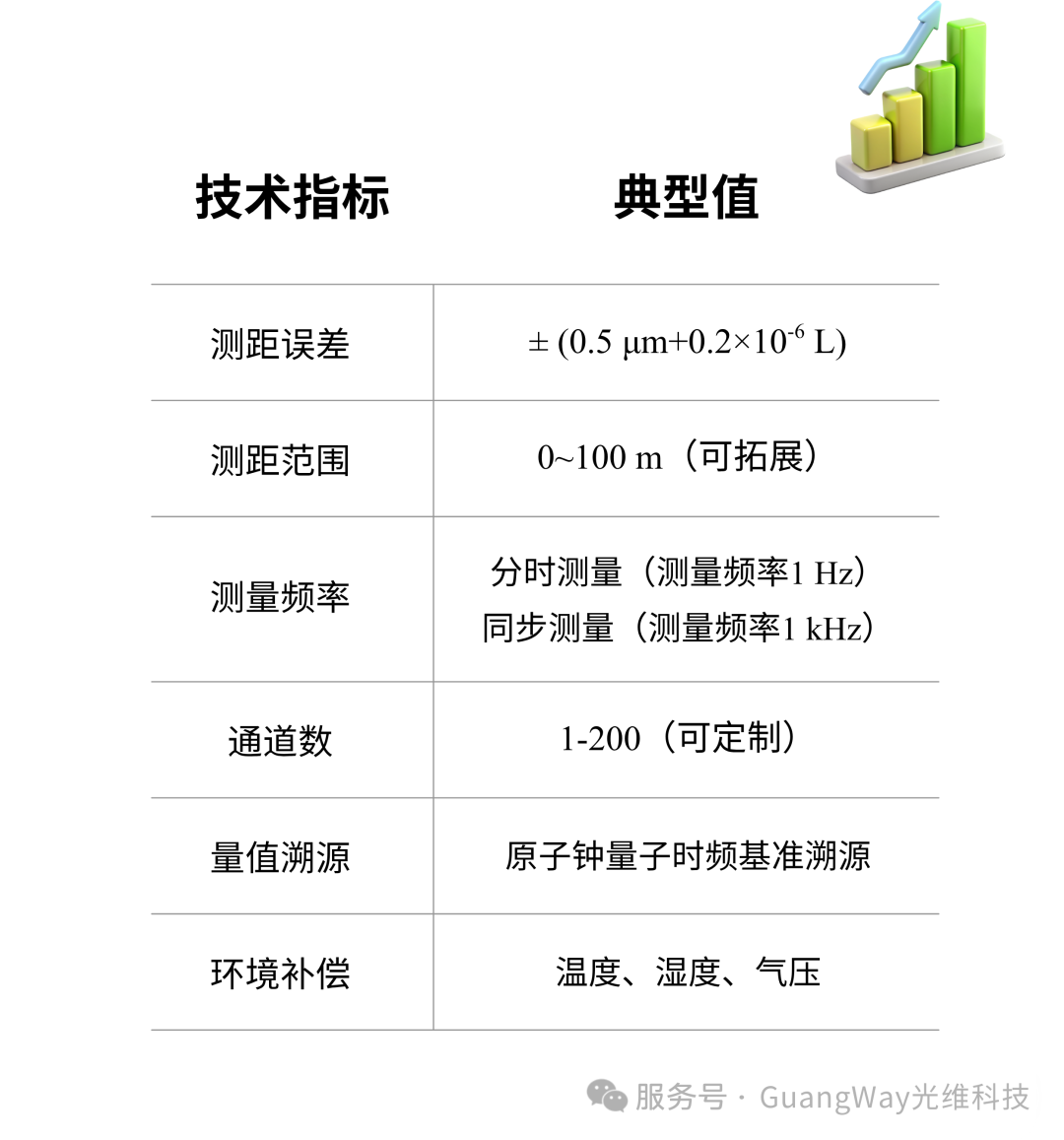 重复性精度不随距离衰减,量程可达百米/公里量级。