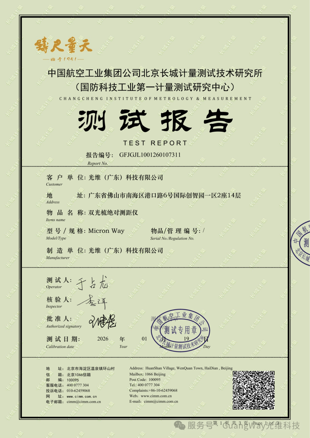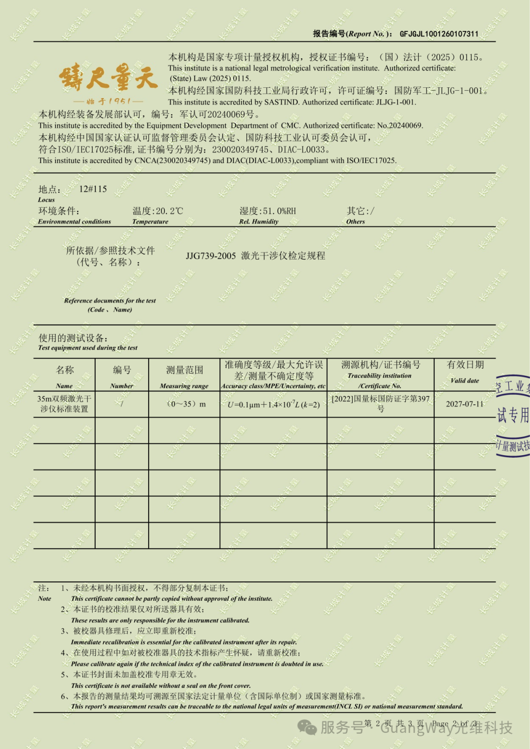 具备全地域、全天候的恒稳标准长度计量能力。