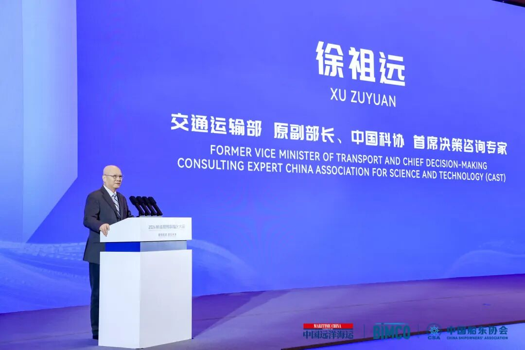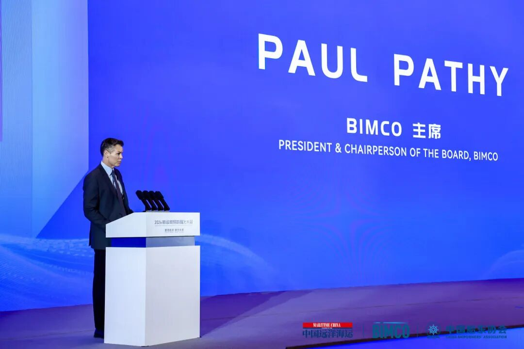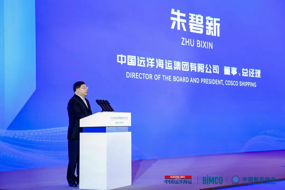 中国远洋海运集团董事、总经理朱碧新,交通运输部原副部长徐祖远和BIMCO主席Paul Pathy出席大会致辞。