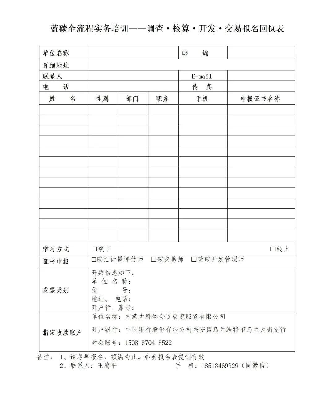 蓝碳全流程实务培训——调查·核算·开发·交易报名回执表.docx