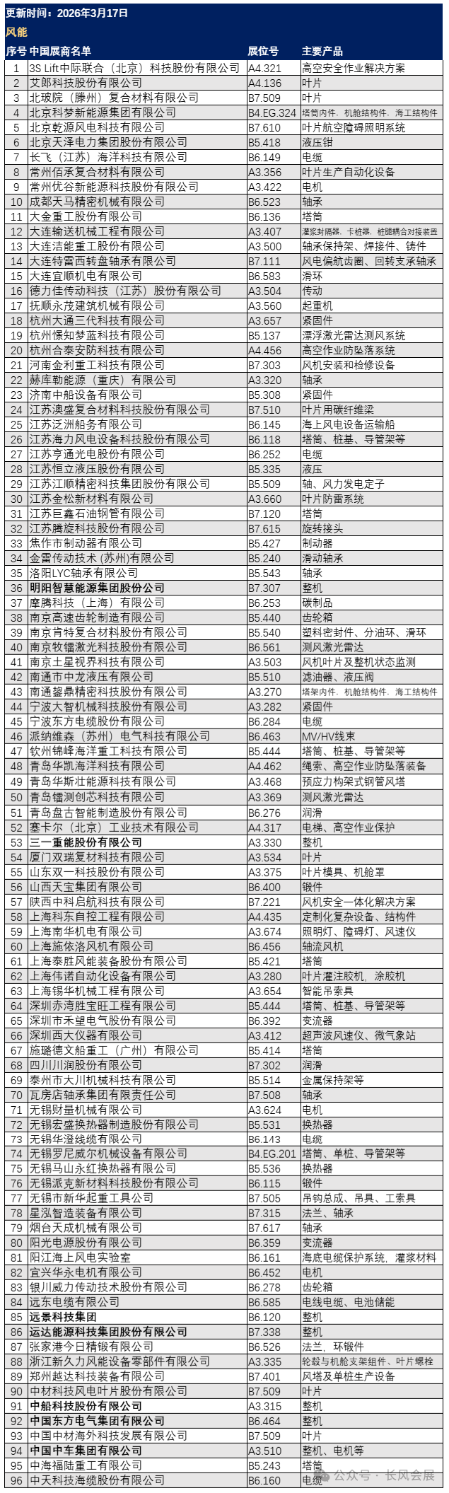 截止2026年3月17日,2026汉堡国际风能展已报名102家中国展商(上届为90家)!