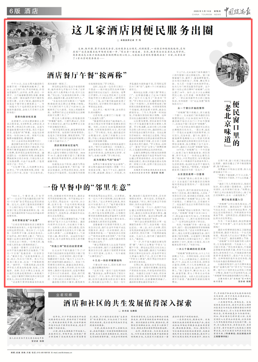 日前,中国旅游报记者采访了3家北京的商务酒店——