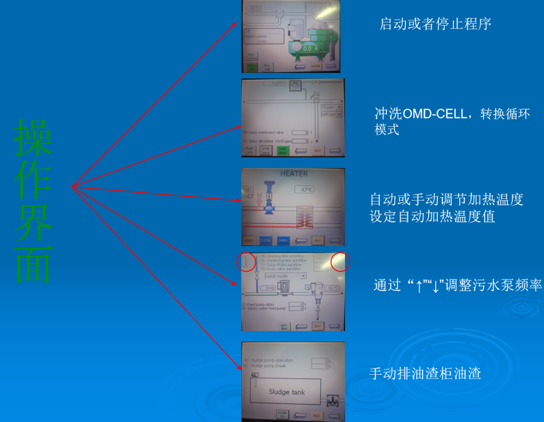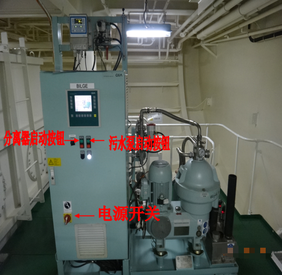 1.合上主电源开关,按下控制箱上分离器启动按钮和污水泵启动按钮,分别启动分离器和污水泵;